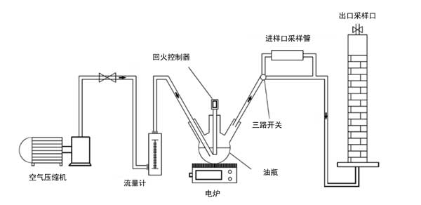 如圖1所示,在裝滿5g顆;钚蕴康牟蓸庸艿娜肟诤统隹谔幨占3分鐘的模擬烹飪油煙樣品。采樣重復(fù)3次。取出樣品管中的顆;钚蕴,轉(zhuǎn)移到燒瓶中,并使用超聲儀用15mL四氯化碳洗滌5分鐘。收集清潔液并將其轉(zhuǎn)移到另一個(gè)燒瓶中(標(biāo)記為A)。用10mL四氯化碳再次洗滌顆;钚蕴浚⑹占鍧嵰翰⑵滢D(zhuǎn)移到燒瓶A中。