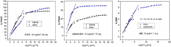 圖2:在活性炭和有機(jī)金屬骨架上吸附有機(jī)分子的粒子內(nèi)擴(kuò)散模型。