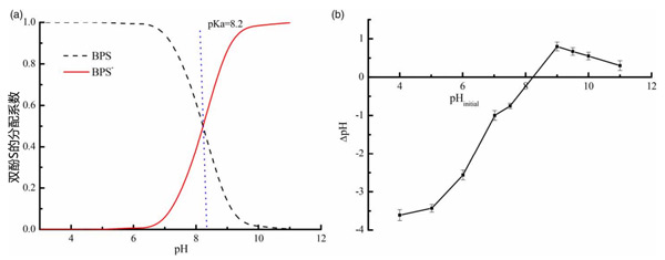 圖3:(a)雙酚S的分配系數(shù),(b)零電荷點(diǎn)(pHpzc)的確定。