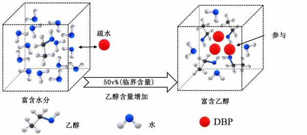 圖2:活性炭吸附過(guò)程中DBP和水-乙醇簇的機(jī)理圖。