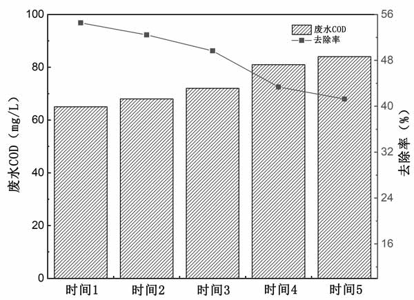 為了評估活性炭的可重復(fù)使用性,對活性炭進行了吸附-解吸實驗。經(jīng)過四個吸附-解吸循環(huán)后,活性炭吸附對焦化廢水中COD的吸附效率僅降低了約10%(圖3),表明活性炭具有良好的可重復(fù)使用性。此外,使用NaOH作為再生劑的方法具有成本效益高的優(yōu)點?傊,這些表明本研究中生產(chǎn)的活性炭在實際廢水處理中具有巨大的應(yīng)用潛力。