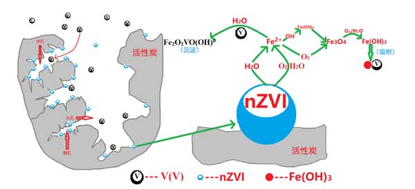 圖3:活性炭載納米零價(jià)鐵從水中去除釩的機(jī)制。