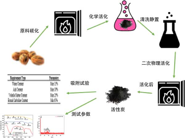 果殼用作生產(chǎn)活性炭的原料。在果殼廢料的合成過程中,第一步是將殼在陽(yáng)光下干燥3小時(shí)。然后將干燥的果殼在350℃的溫度下碳化2小時(shí)。隨后使用研缽將碳化的果殼研磨成粉末,然后過100目篩。樣品制備首先稱量肉豆蔻殼粉末和預(yù)定的1M-HCl溶液。接下來(lái),用1M-HCl溶液將粉末活化24小時(shí)。活化后,活性炭過濾并用蒸餾水洗滌,直至pH值變?yōu)橹行浴R坏﹑H值為中性,活性炭就會(huì)在110℃的溫度下煅燒1小時(shí)。煅燒后,來(lái)自肉豆蔻殼的碳在惰性氣體氣氛(氮?dú)?中在600℃、650℃和700℃的溫度下退火2小時(shí)。然后用蒸餾水洗滌所得結(jié)果以除去金屬化合物。氨(NH3)水平降低最多的樣品將根據(jù)下面的圖1進(jìn)行表征。