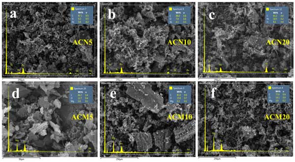 對于Mg改性樣本,命名為ACM5、ACM10、ACM20;