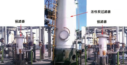 圖2.具有預(yù)過濾和后過濾系統(tǒng)的典型貧胺活性炭吸附系統(tǒng)。