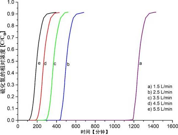 通過使用經(jīng)受不同操作參數(shù)的混合氣體測試活性炭性能,例如流速,所用長度床,所用氣體類型和活性炭。為了確定吸附容量,穿透點和飽和點分別表示硫化氫濃度何時在出口流處達(dá)到1ppm和1000ppm。此外,數(shù)據(jù)表示為重復(fù)三次的平均結(jié)果。