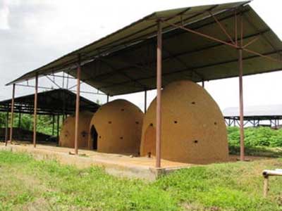 在這個(gè)過程中,活性炭前植物材料被切成均勻尺寸堆在窯中水平堆放(圖1)。然后用磚塊封閉門,并在外面抹上泥漿,以便更好地隔熱并防止泄漏。通過在水平和垂直方向上調(diào)節(jié)開口將溫度保持在400-500℃來實(shí)現(xiàn)碳化。所有開口在2天后關(guān)閉,以便不允許空氣進(jìn)入窯以防止活性炭原炭化料著火。冷卻一天以將溫度降低至100℃。將炭化料從窯底部的開口中取出并洗滌,干燥并粉碎,并進(jìn)一步進(jìn)行化學(xué)活化,兩種活性炭分別用硝酸和磷酸活化獲得四種不同屬性的活性炭。并用蒸餾水洗滌活性炭以除去過量的酸,并在150℃下干燥12小時(shí),獲得的粉末狀活性炭具有40-50μm篩目的粒度。