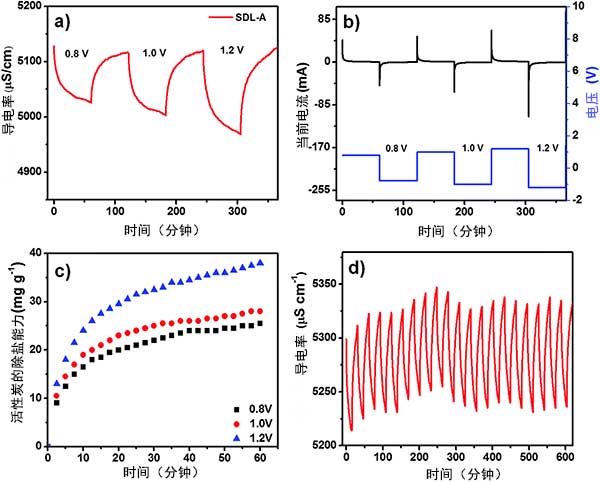 圖2:活性炭用于膜電容去離子應(yīng)用的電吸附性能。