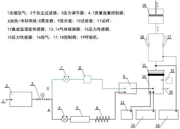 使用環(huán)己烷蒸氣作為被吸附物質在圖2中所示的試驗臺上進行突破性實驗。選擇環(huán)己烷進行實驗,因為它是測試標準中特性比較全面的。此外,測試設置如圖2所示由于這種情況,優(yōu)化了使用環(huán)己烷作為測試物質。環(huán)己烷是這類物質的良好代表,因為它是非極性和非反應性的,因此應主要通過物理吸附與活性炭表面結合。此外,它是在工業(yè)過程中大量使用的化合物之一,因此它經常存在于工作環(huán)境中。
