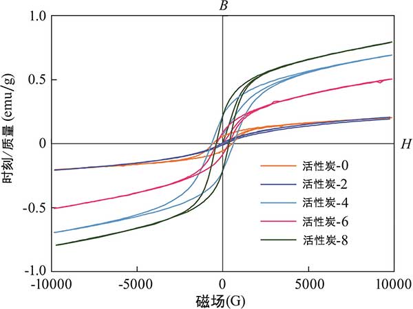 活性炭的磁滯回線如圖3所示。隨著鐵含量增加,活性炭的飽和磁化強度首先降低并隨后增加。活性炭的飽和磁化強度值與活性炭中殘留的四氧化三鐵和金屬鐵的量有關(guān),因為它們具有磁效應(yīng);钚蕴康奶囟ù呕适谴欧蛛x的重要參數(shù)之一。
