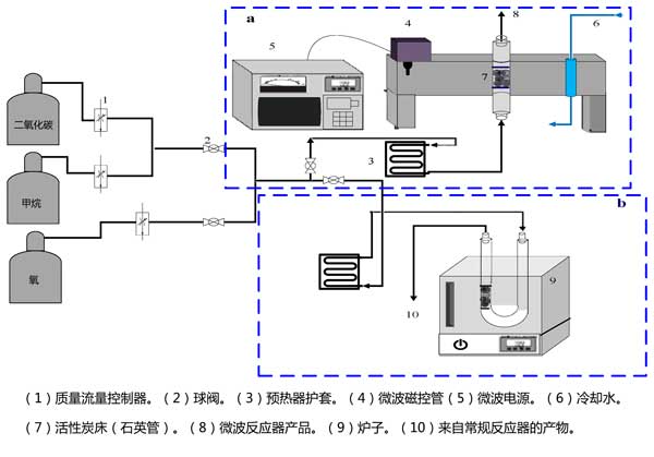 圖1:微波和甲烷干重整的常規(guī)設(shè)置的示意圖。