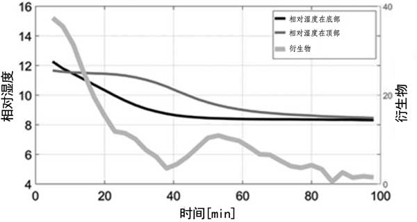 圖4:反應(yīng)器內(nèi)的相對(duì)濕度和出口中二氧化碳的衍生物。