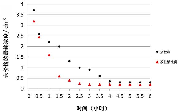 根據(jù)實(shí)驗(yàn)結(jié)果表明,溶液的pH值顯著影響了所測(cè)試活性炭的吸附能力。對(duì)于(HNO 3)改性活性炭,吸附隨著溶液pH值的增加而略有下降。對(duì)于其他活性炭而言,反應(yīng)對(duì)鉻吸附容量的影響更大,并且在較低的pH值下肯定更有利。無(wú)機(jī)酸(化學(xué)修飾)對(duì)活性炭的作用導(dǎo)致其吸附性能發(fā)生變化。鹽酸的使用通過(guò)中孔灰分的去除而增加了活性炭的比表面積,從而有助于六價(jià)鉻的吸附能力的提高。用硝酸進(jìn)行改性(氧化)會(huì)導(dǎo)致吸附能力下降,這很可能與活性炭表面化學(xué)性質(zhì)的變化以及由于碳氧化而造成的孔結(jié)構(gòu)的部分破壞有關(guān)。吸附時(shí)間對(duì)特定活性炭去除六價(jià)鉻的效率有重要影響。根據(jù)進(jìn)行的研究,改性的硝酸活性炭可很好的去除水中的六價(jià)鉻化合物,這使其有可能在水處理系統(tǒng)中使用。