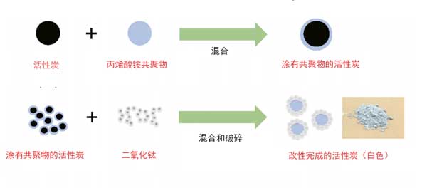活性炭通常用作出色的多功能吸附劑;钚蕴康亩嗫妆砻婵赏ㄟ^(guò)將極薄的化合物層粘附到較大的碳表面積上來(lái)使各種化學(xué)物質(zhì)失活。它們通常用于吸附去除飲用水和工業(yè)用水中的顏色,氣味,味道和不良有機(jī)和無(wú)機(jī)污染物。此外,活性炭常用于許多化學(xué),食品和其他物質(zhì)的純化。因此,基于我們的發(fā)現(xiàn),活性炭對(duì)各種產(chǎn)生體味的化合物表現(xiàn)出高吸附能力,改性后更強(qiáng)。將平均直徑為9.4或40.5μm的活性炭粉與丙烯酸銨共聚物溶液在超純水中完全混合。將平均直徑為0.25μm的二氧化鈦粉末以5-20g的不同濃度添加到混合物中,以制造相應(yīng)的改性活性炭。在115℃下將樣品干燥2小時(shí)后,使用破碎機(jī)通過(guò)均勻研磨獲得除異味活性炭(圖1)。并且比較了活性炭與除異味活性炭中所含活性炭的吸附能力。