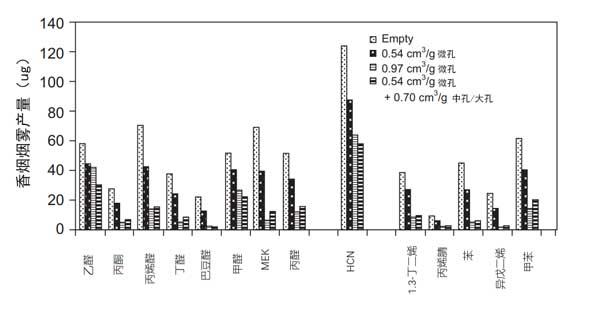 圖3:活性炭孔徑和分布對煙氣產量的影響。
