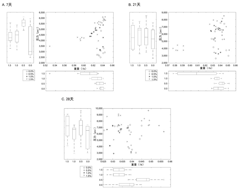 圖2:活性炭含量,抗壓強(qiáng)度和樣品重量之間的關(guān)系。